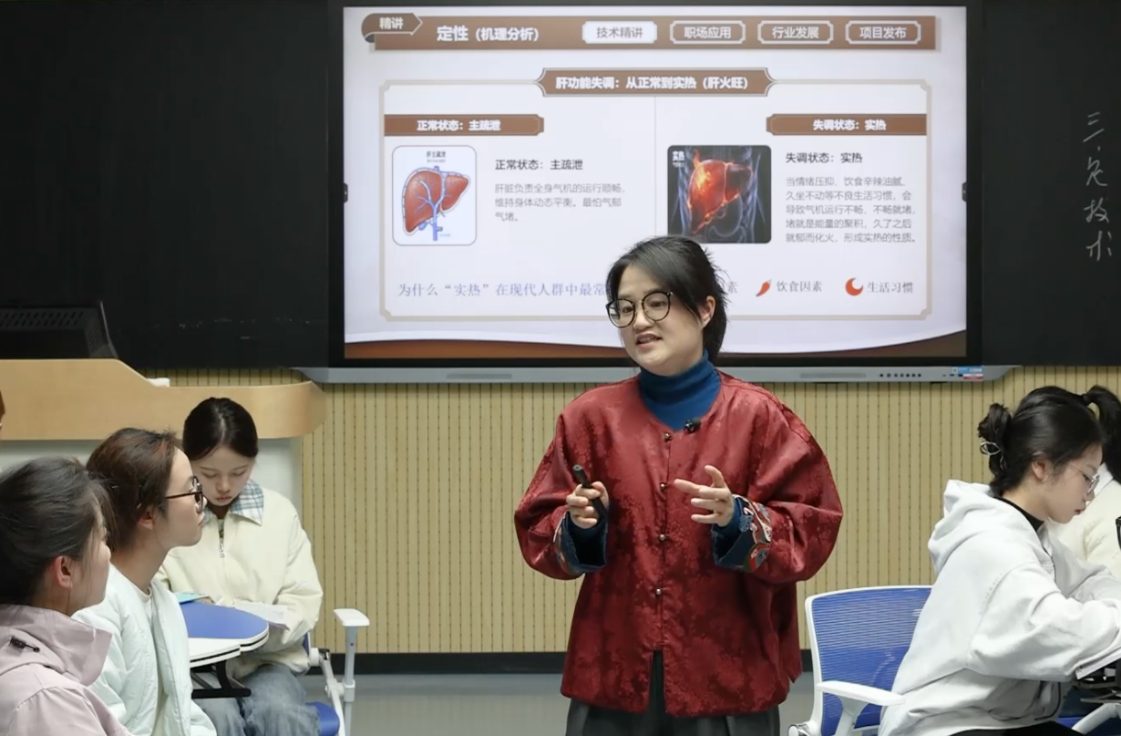 杨梅老师以《中医健康管理适宜技术》课程呈现的“书本技术”原型转化成产教融合“职场实操技术”为基准,课程以OBE与PDSIPE教育理念为引领,坚持以学生为中心,聚焦课堂教学真实痛点,将课程思政、产教融合、人工智能、教学改革等元素有机融入教学创新全过程,多维度视角对课程构建、内容重构、项目设置、教学模式、评价体系、教学资源、“双师”配置、育人协同机制等诸要素进行整体性建构与实践,深化了教学应用型“产教融合”内涵,为大面积实施课程应用型变革提供了丰富可借鉴经验。